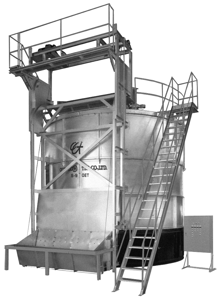Отходы загружаются сверху в резервуар при помощи лифта-ковша.